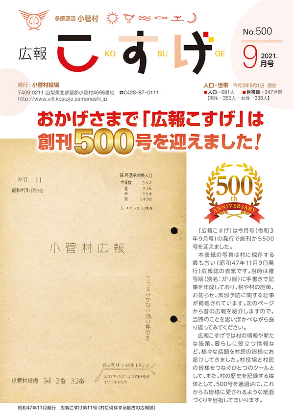 広報こすげ創刊「500号」記念 広報誌で小菅村の歴史を振り返る